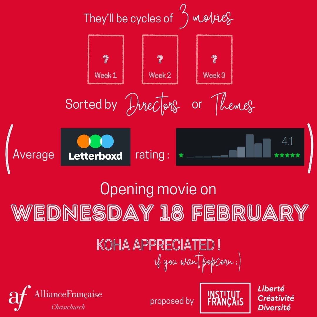 Every Wednesday, a French movie (with english subtitles) will be aired at the Alliance Française. These films will be presented in cycles of three, with each time a common director or theme. 🎞️